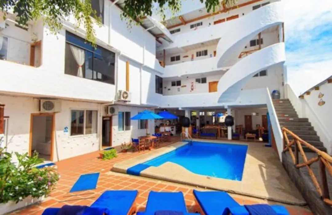 Há piscina disponível em hotel Puerto Ayora.